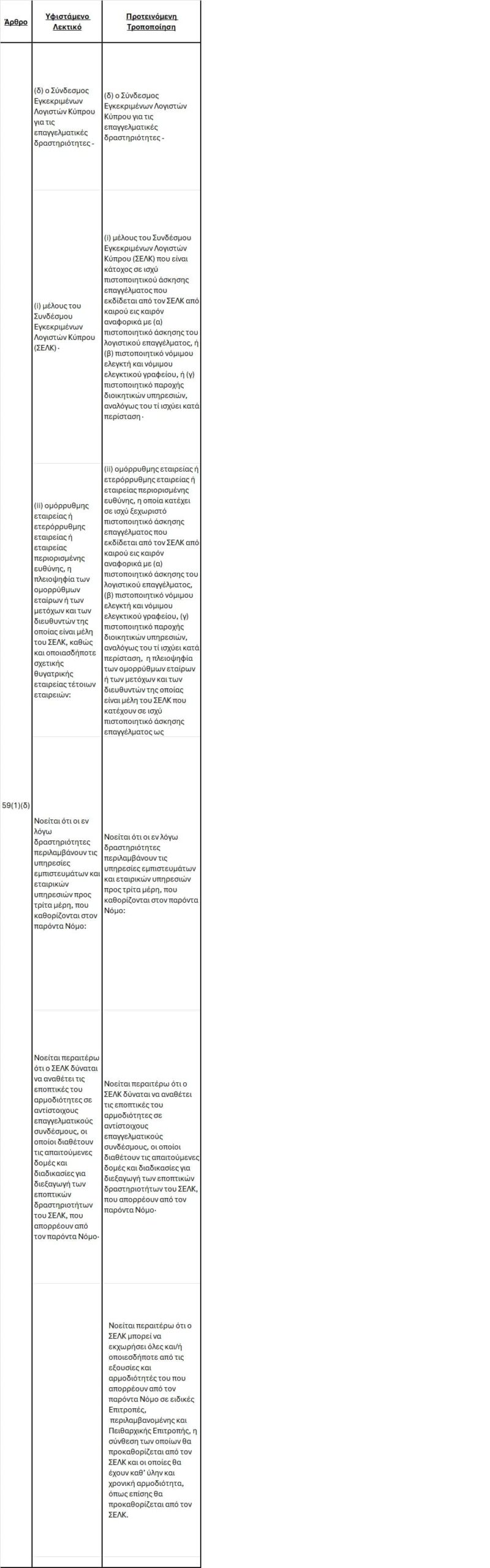 ولهذا الغرض، اقترحت لجنة المحاسبة والمحاسبة الدولية استبدال المادة 59 (1) (د) بمادة جديدة وقدمت الاقتراح ذي الصلة في سياق العملية الجارية لتعديل القانون، والتي هي حاليًا في مرحلة التشاور العام، مع تاريخ إغلاق في 14 فبراير 2026.